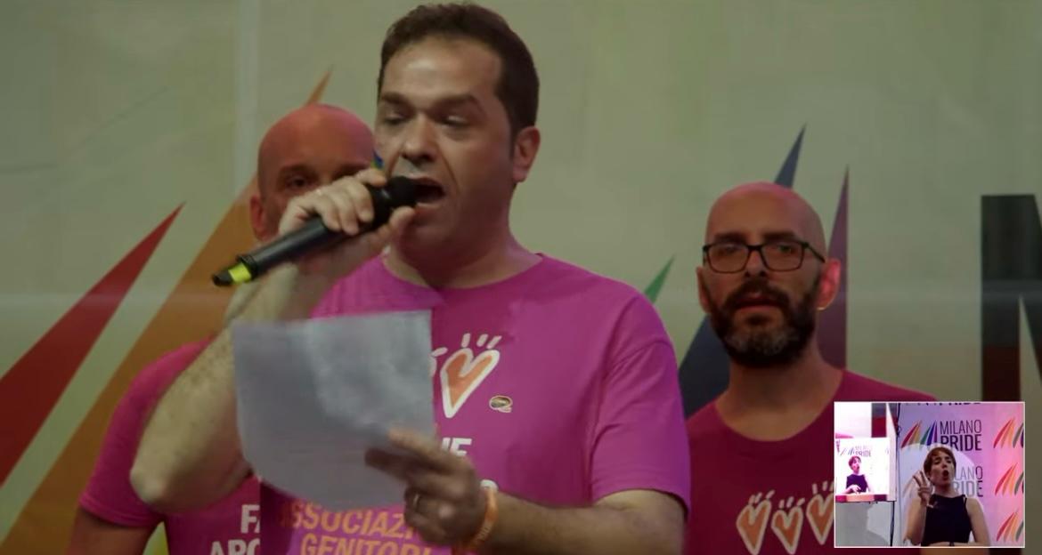 Sul palco del Milano Pride salgono dei rappresentanti della Rete Genitori Rainbow che commentano le azioni del Governo.