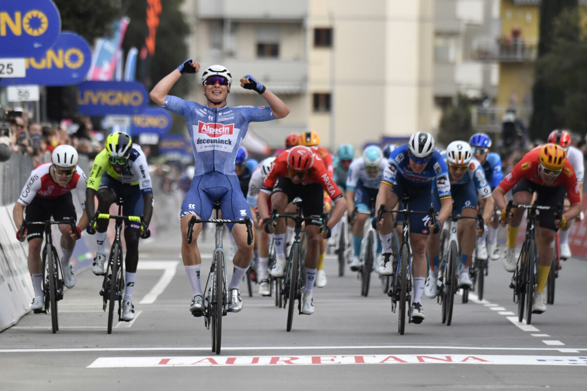 Mentre dietro ci si lecca le ferite, le squadre dei velocisti lanciano lo sprint finale: nonostante il grande lavoro della Soudal Quick Step, Tim Merlier compie un errore di valutazione uscendo dall'ultima curva prima del traguardo troppo presto. Jasper Philipsen rimane alla sua ruota, e nel momento in cui il suo avversario smette di pedalare per la fatica accumulata si alza sui pedali e lancia il proprio sprint, andando a vincere di gran carriera sul traguardo di Follonica. Chiude in seconda posizione Tim Merlier, mentre il podio di giornata viene chiuso da Axel Zingle, francese della Cofidis. Non brillano gli italiani in questa giornata: Filippo Ganna e Jonathan Milan non riescono a lottare con i migliori, e al traguardo il primo degli azzurri è Giovanni Lonardi, portacolori del Team Polti Kometa, in settima piazza. Ci si aspettava molto di più soprattutto da Milan, che ha chiuso in nona posizione: dopo la cronometro di ieri, il friulano sembrava in grande condizione di forma, ma nel finale il corridore della Lidl-Trek è rimasto chiuso.