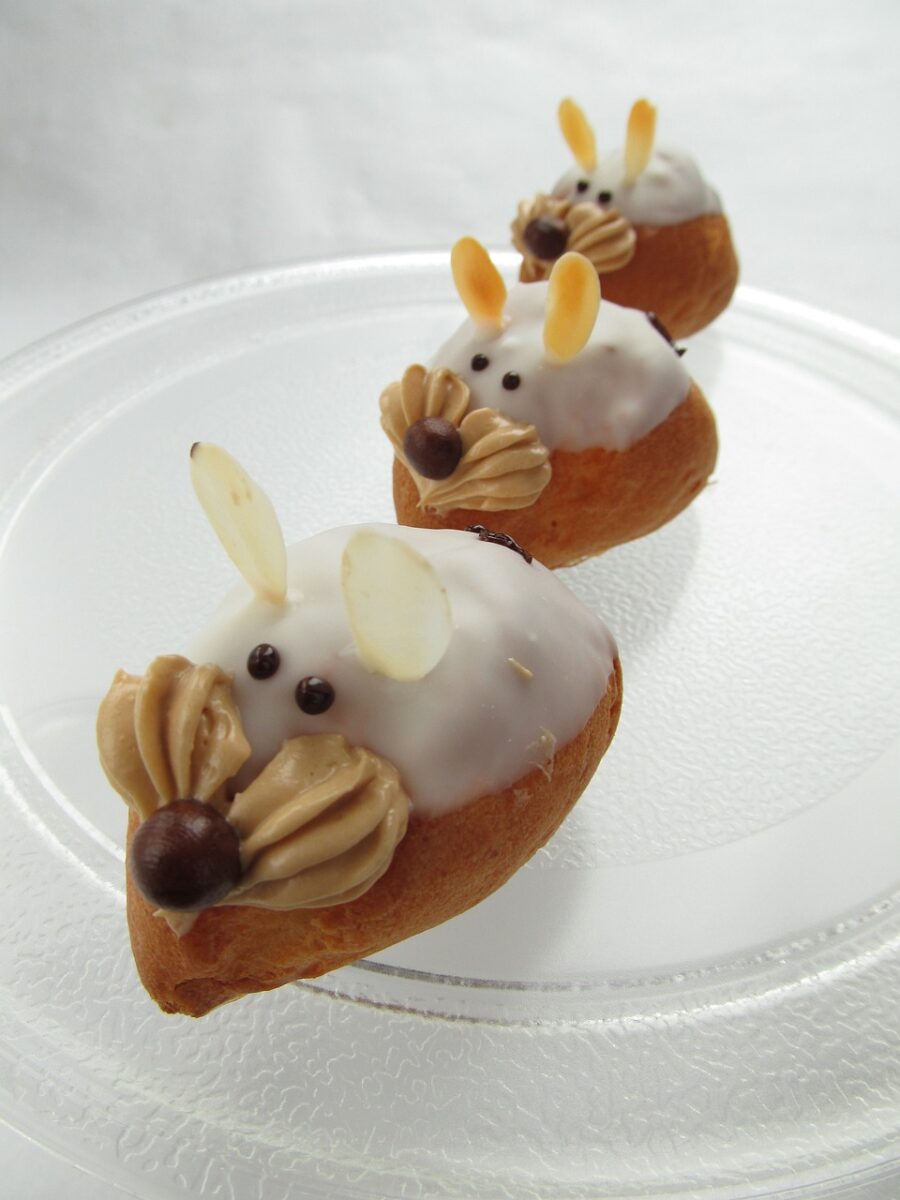 In questo articolo vogliamo invece proporvi un classico dolce da vassoio in una versione animalier davvero originale: i bignè ripieni di crema pasticcera presentati come teneri coniglietti. In poche mosse, questo piccolo e goloso dessert, solitamente servito a fine pasto o con il tè del pomeriggio, si trasforma in un inedito dolcetto pasquale, che farà impazzire i bambini e intenerire gli adulti. Ecco dunque la ricetta per realizzarli, lasciando a voi la possibilità di effettuare tutte le modifiche che la vostra fantasia vi suggerirà per personalizzarlo e farlo così diventare un "dolce di casa" ad ogni Pasqua.
