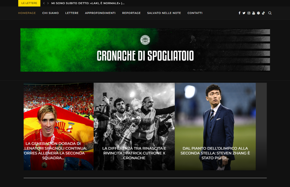 Cronache di Spogliatoio ha ridefinito il panorama del giornalismo sportivo in Italia, affermandosi come testata innovativa, e all'avanguardia. Fondata nel 2019, da Giulio Incagli e Stefano Bagnasco, si è posta l'obiettivo di raccontare il calcio alla Generazione Z attraverso una piattaforma digitale che, partendo dal sito web e conquistando i social media, è rapidamente diventata un punto di riferimento per i giovani appassionati di sport.