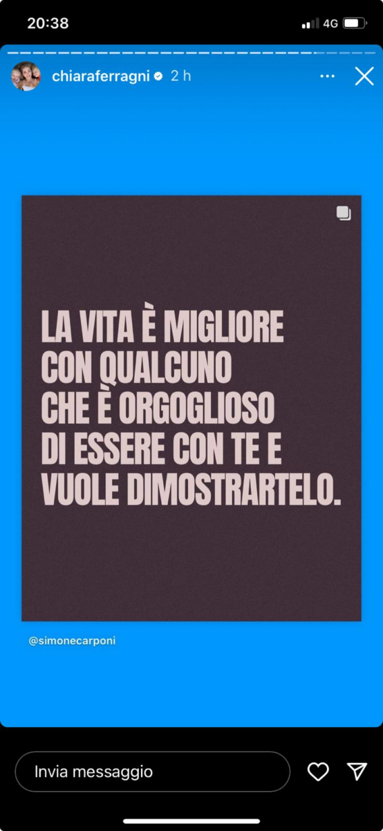 Chiara ha ricondiviso un post su Instagram con la citazione: