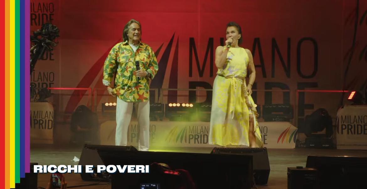 I Ricchi e Poveri arrivano sul palco del Pride di Milano e cont tutta la loro energia, coinvolgono il pubblico presente all’evento. Sarà perché ti amo fa scatenare le persone che cantano e ballano insieme al leggendario duo italiano. Tanta gioia ed allegria per coronare una giornata importante. Dopo il successo di Sanremo 2024 con Tutta la vita, si esibiscono con la loro nuovissima canzone Aria.