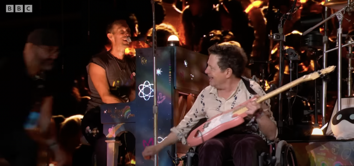 Michael J. Fox, 63 anni, malato di Parkinson, è apparso sulla sua sedia a rotelle per suonare durante "Fix You" e "Humankind", due dei più famosi dei Coldplay. Chris Martin ha rivelato che l'attore è stato una delle sue fonti di ispirazione: