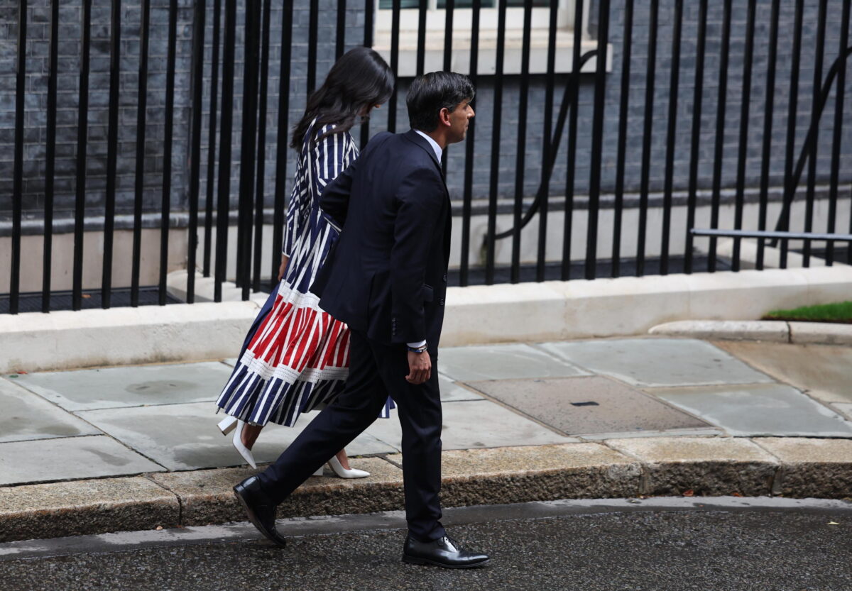 Rishi Sunak ha affermato di essere orgoglioso dei suoi risultati e di credere che il Regno Unito sia più prospero, più equo e più resiliente rispetto al 2010. L'ex premier ha lasciato poi in modo iconico una grigia Downing Street, mano nella mano con la moglie Akshata Murthy.