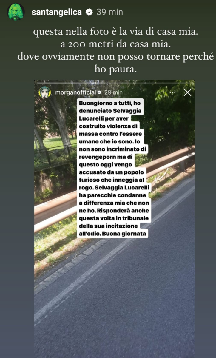 In una storia su Instagram, Marco Castoldi (in arte Morgan) ha dichiarato di aver denunciato Lucarelli per aver alzato un polverone, una campagna d'odio di massa contro di lui "accusandolo ingiustamente" di revenge porn.