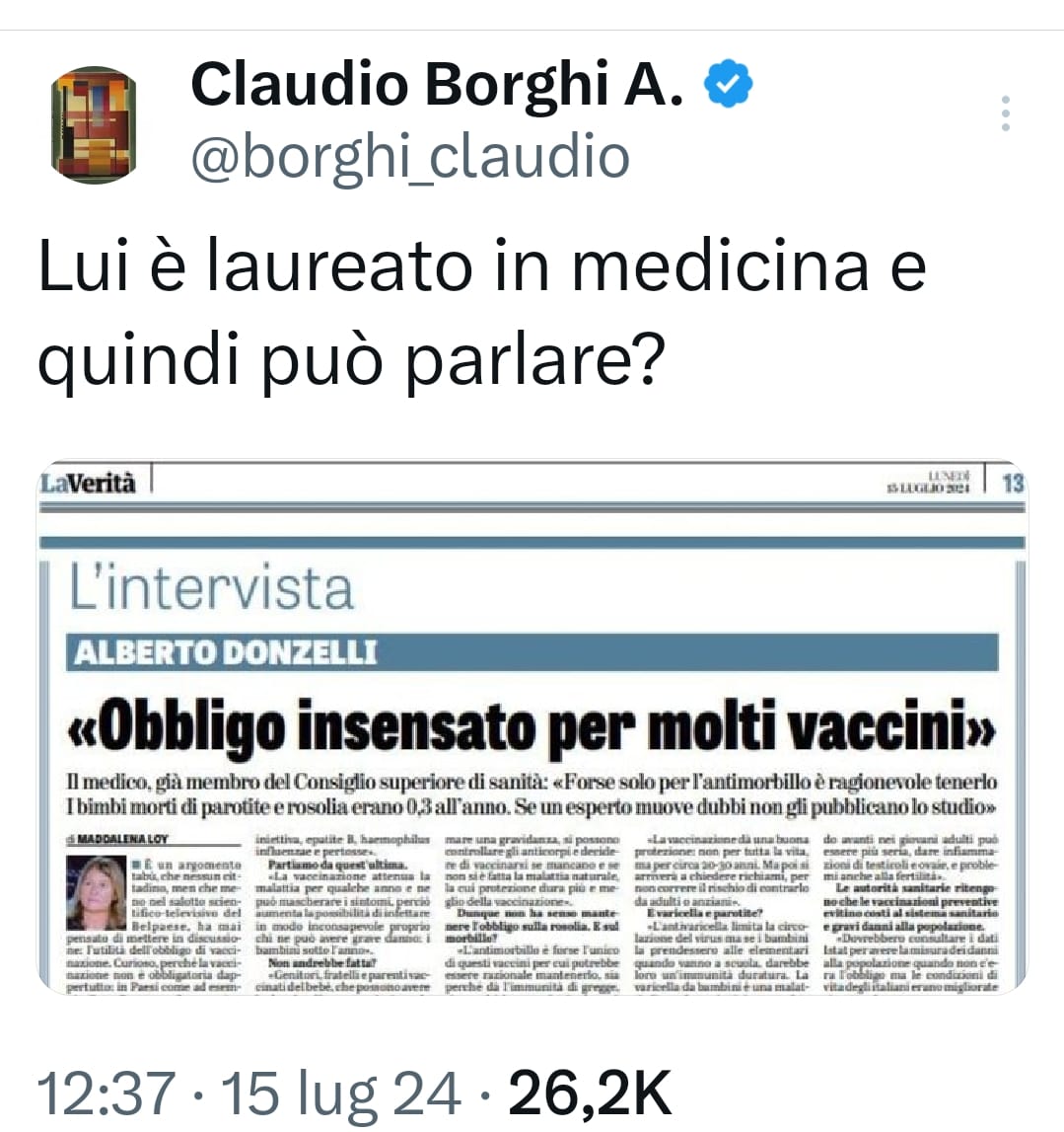 Ma quali sono state le reazioni dopo la bocciatura dell'emendamento Borghi in commissione sanità? Il diretto interessato si è contraddistinto, almeno fino al tardo pomeriggio di oggi, 15 luglio, per un inedito silenzio social. Anche se diversi dei suoi ultimi post su X sono dedicati proprio al tema sanità e vaccini