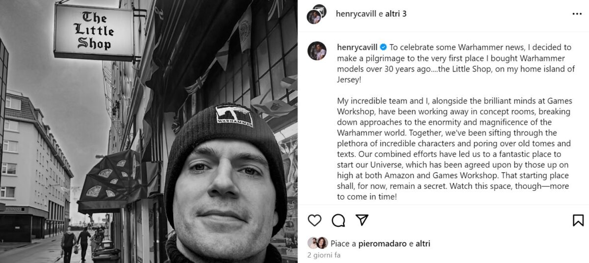 "Per celebrare alcune novità di Warhammer, ho deciso di fare un pellegrinaggio al primo posto in cui ho acquistato modelli di Warhammer più di 30 anni fa... il Little Shop, sulla mia isola natale di Jersey!" ha scritto Cavill su Instagram.