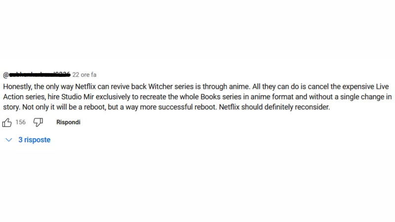Piccole lamentele sul doppiaggio del Lupo Bianco a parte, l'adattamento anime sembra acquistare sempre più consenso con il passare delle ore. Al contrario della precedente serie animata Netflix "The Witcher: Nightmare of the Wolf", dedicata a Vesemir, strigo e mentore di Geralt, al centro dell'adattamento ci sarà lo strigo che ha conquistato migliaia di fan in tutto il mondo.