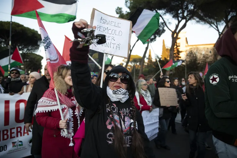 In Italia, le bandiere di alcuni partiti di sinistra si sono mischiate a quelle della Palestina anche quando si sono intonati, nei cortei, i cori più estremisti contro Israele e gli ebrei.