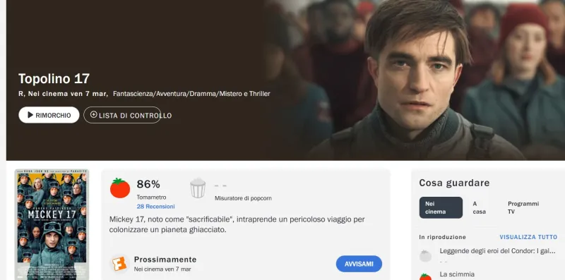 Mickey 17 ha debuttato su Rotten Tomatoes con l'86%.