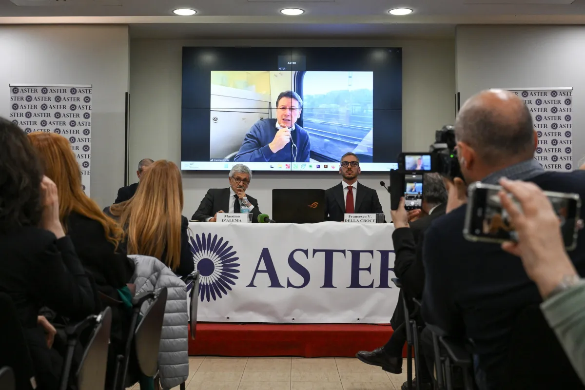 All'evento di Aster era presente anche l'ex presidente del Consiglio, Massimo D'Alema. Durante il discorso c'è stata la contestazione di alcuni studenti e militanti dell'estrema sinistra nei confronti dei due ex premier, definiti "guerrafondai".