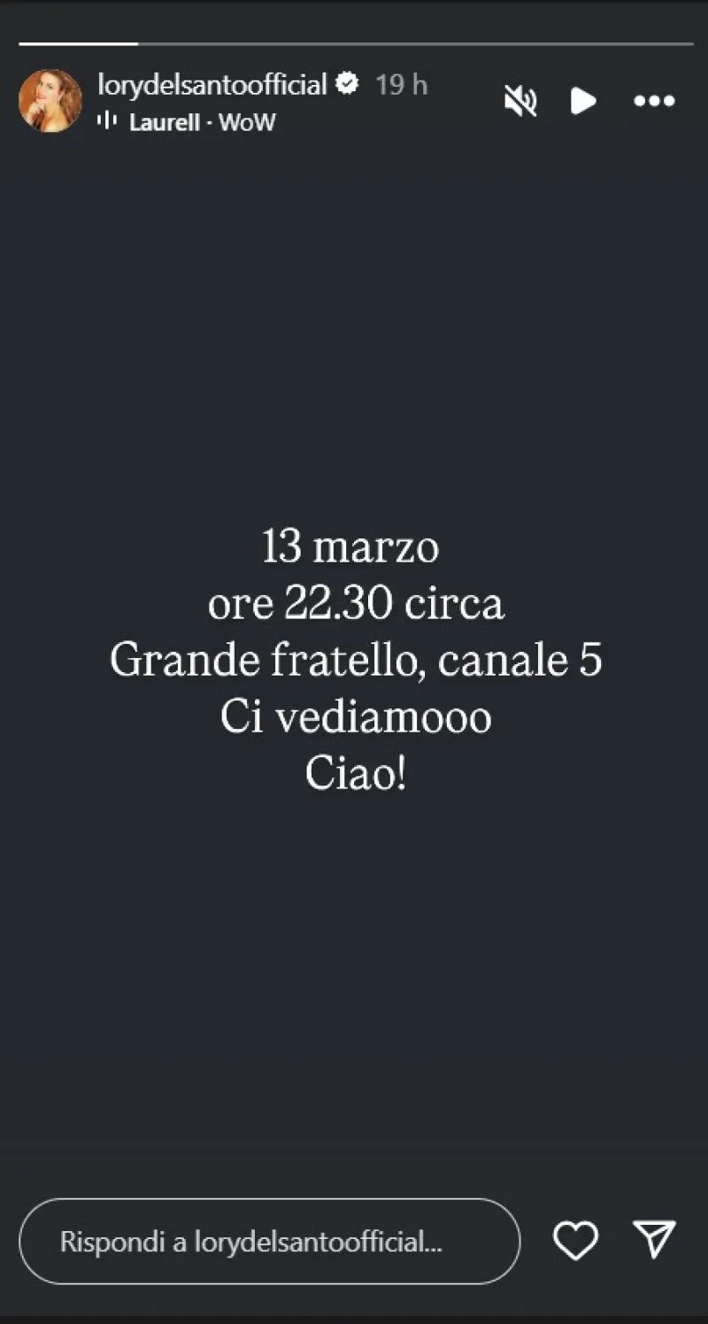 È tempo di premi e di sorprese adesso che siamo quasi arrivati alla fine di questa edizione del Grande Fratello. A farsi avanti è Lory del Santo, che nelle storie Instagram rivela che la vedremo in diretta nella puntata di stasera, 13 marzo 2025.