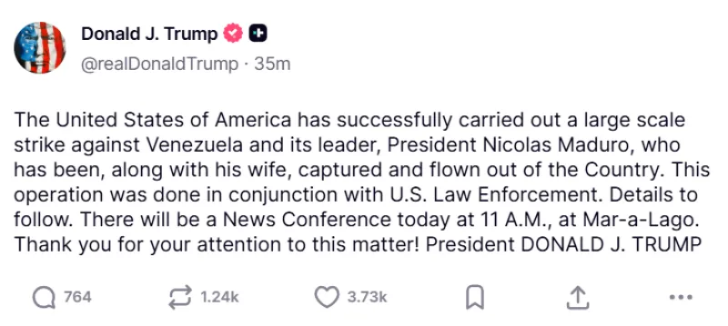Il presidente degli Stati Uniti, Donald Trump, ha affermato in un post su Truth Social che il suo paese ha condotto “con successo un attacco su larga scala” contro il paese sudamericano.