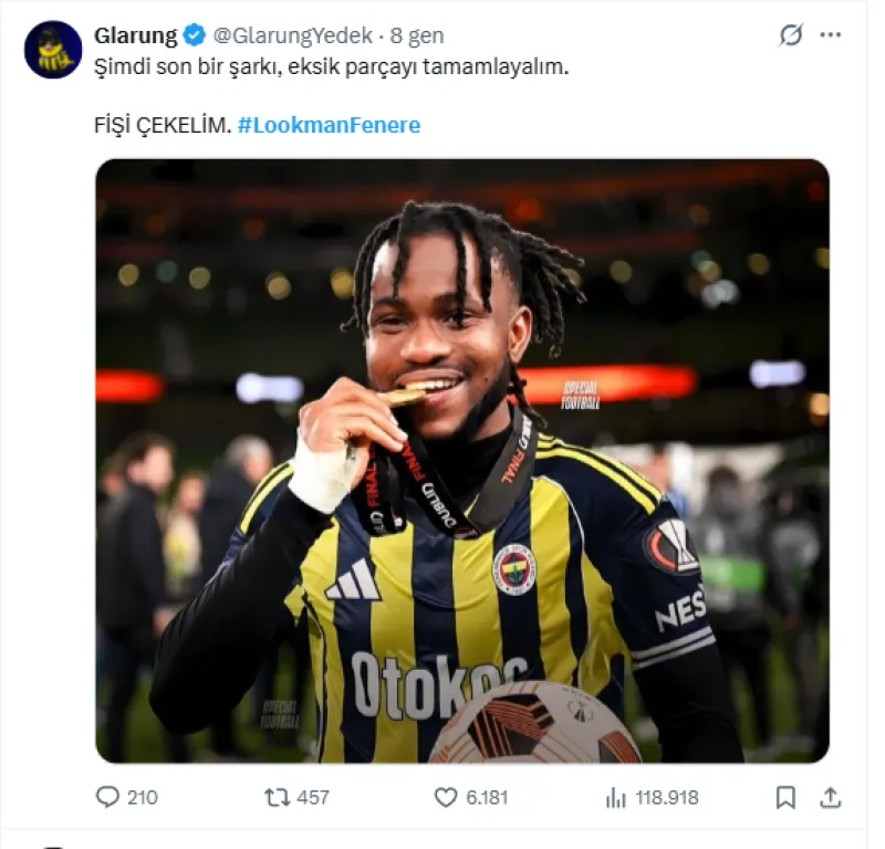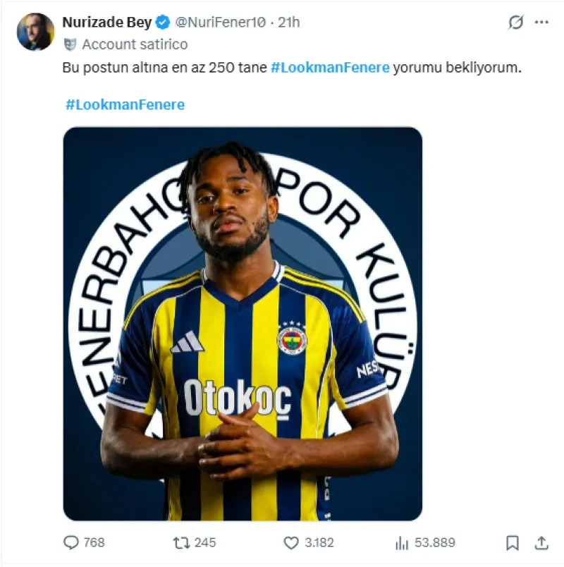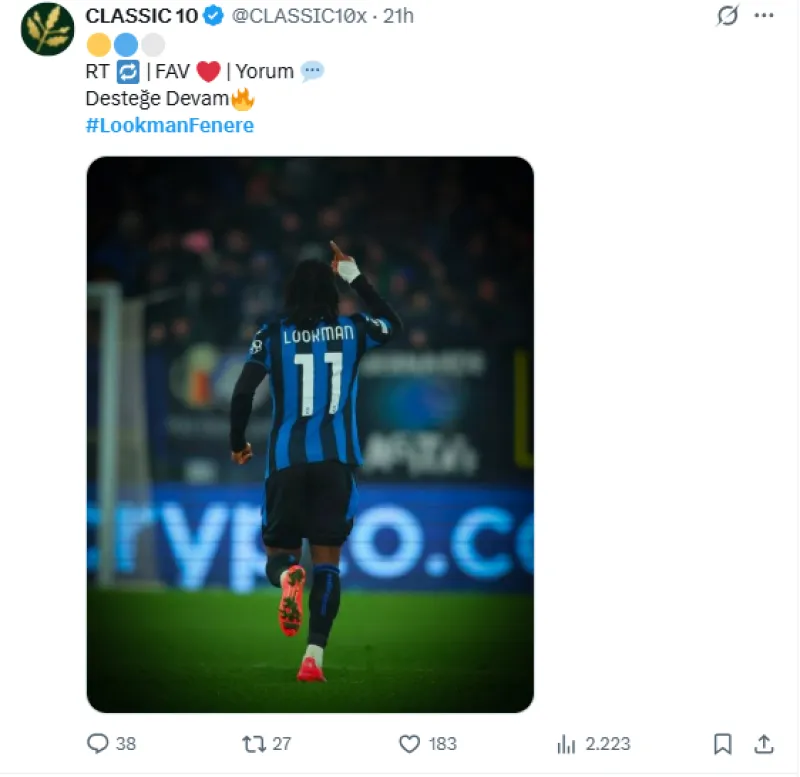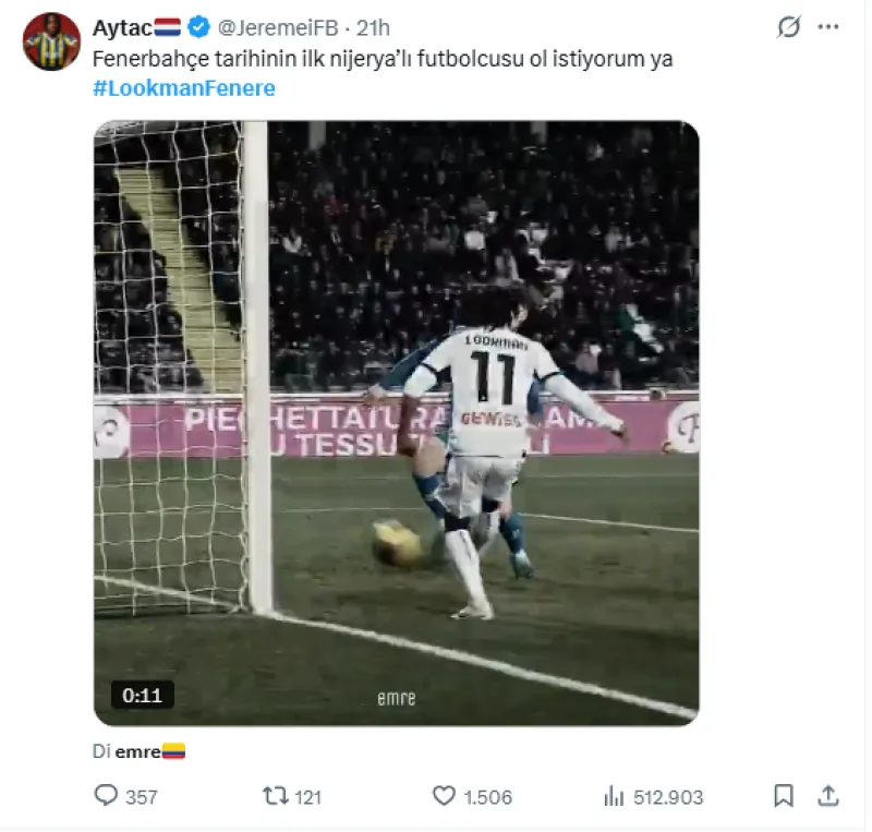 dove molti tifosi del Fenerbahçe lo pubblicano per sostenere la causa della società e invitare Lookman ad unirsi al club.