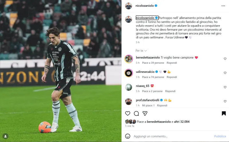 A comunicarlo è stato lo stesso attaccante dell’Udinese con un messaggio sui social, che ha subito fatto il giro del web e acceso la preoccupazione dei tifosi: