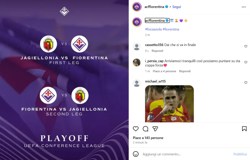 La Fiorentina conosce finalmente la sua avversaria nei playoff di Conference League 2026: sarà la Jagiellonia. Dopo aver chiuso la League Phase al 15° posto, i viola affrontano ora una sfida decisiva per conquistare l’accesso agli ottavi di finale.