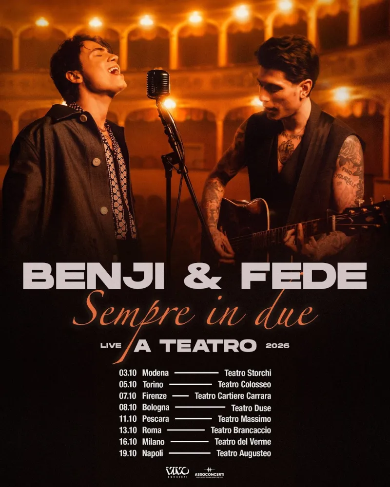 Per la prima volta nella loro fortunata carriera, Benji & Fede scelgono il teatro come cornice per il loro racconto in musica. Dopo anni passati a scalare le classifiche con hit solari e ritmate, il duo sente l'esigenza di una connessione diversa con il pubblico, fatta di silenzi, ascolto e sfumature.