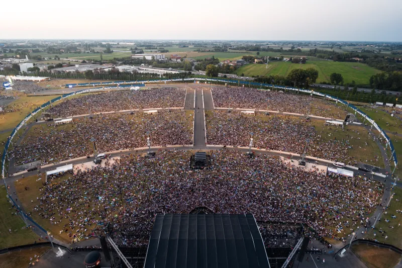 Si tratta di una location immensa, con capacità di accogliere 70.000 ospiti. Per chi volesse arrivare alla location in macchina, è possibile lasciare l’auto nel parcheggio VIP. Dall’autostrada A1, basta uscire a Reggio Emilia e seguire le indicazioni per l’aeroporto: con 10-15 minuti di auto si arriva all’arena.