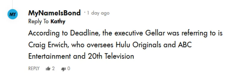Secondo la sua versione, la responsabilità principale è stata di un dirigente che non ha mai creduto davvero nel progetto. Senza fare nomi, l’attrice ha lasciato intendere che la decisione sia arrivata dall’alto, con fonti che indicano Craig Erwich come figura chiave nella cancellazione: