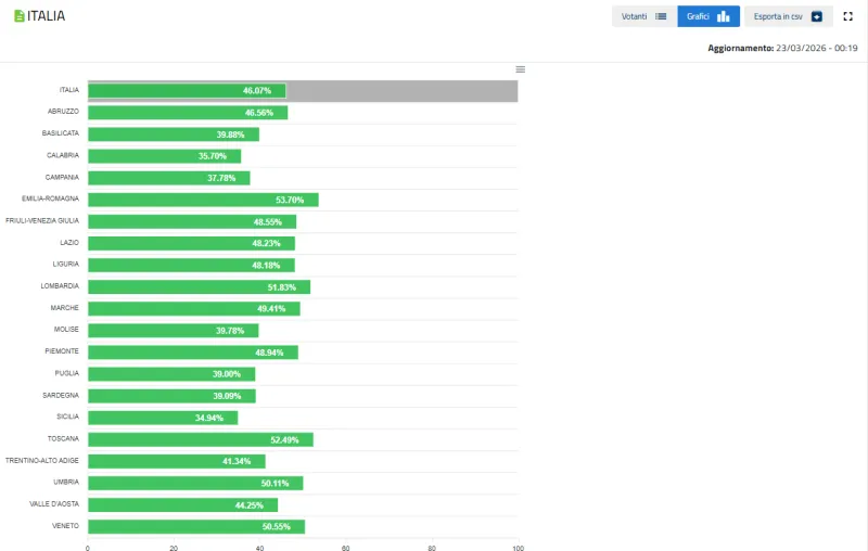 Ma, il referendum sulla giustizia 2026 mostra un'affluenza nel primo giorno (22 marzo) già superiore a quella dei referendum costituzionali del 2001 (unico giorno di voto) e del 2006 (due giorni) nelle fasce orarie comparabili.