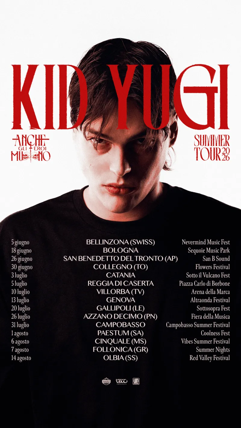 Sarà un’estate all’insegna del sole cocente e di una sana dose di rap per i fan di Kid Yugi. Il rapper pugliese ha annunciato le date del suo nuovo tour estivo 2026, "Anche Gli Eroi Muoiono Summer Tour", prodotto da Thaurus.