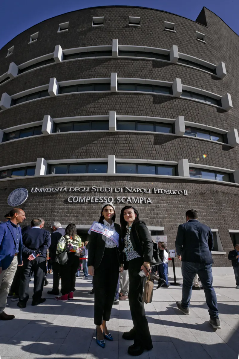 Zeudi Di Palma, eletta Miss Italia 2021, con la mamma Maria Rosaria Marino all’inaugurazione della nuova sede Federico II a Scampia, 17 ottobre 2022.