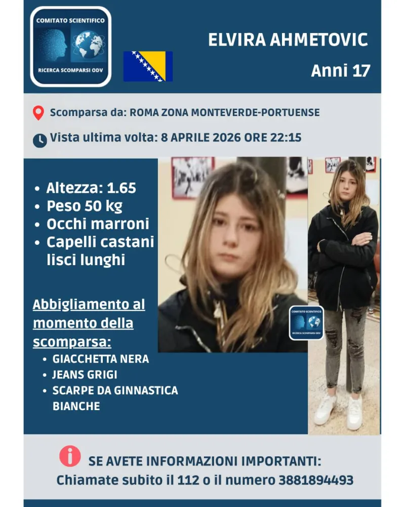 Sono ore di forte attenzione a Roma per la scomparsa di Elvira Ahmetovic, la ragazza di 17 anni che si è allontanata da un centro di accoglienza nella zona Monteverde-Portuense nella serata dell’8 aprile 2026.