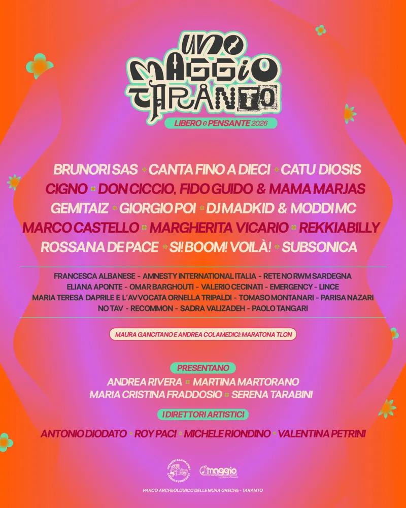 L'edizione sarà documentata anche dai filosofi di Tlon, Maura Gancitano e Andrea Colamedici, che racconteranno l'evento sui social per chi non potrà essere presente. In un’epoca di distrazione di massa, l'Uno Maggio Taranto dimostra che è ancora possibile mobilitarsi per un ideale comune, ribadendo che la politica deve tornare a occuparsi del benessere collettivo e della rimozione delle ingiustizie sociali.
