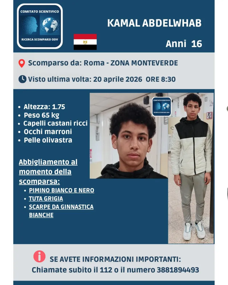 Sono ore di forte attenzione a Roma per la scomparsa di Kamal Abdelwhab, il ragazzo di 16 anni di cui si sono perse le tracce nella mattinata del 20 aprile 2026 dopo l’allontanamento da un centro di accoglienza della Capitale, in zona Monteverde.
