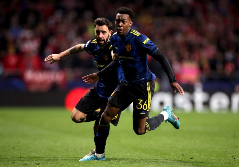 Simeone. Primi minuti a ritmi altissimi per l’Atletico Madrid, che tenta la pressione sulla squadra di Rangnick. Alla prima occasione infatti i Colchoneros passano: Renan Lodi dalla trequarti mette dentro un pallone per Joao Felix che di testa anticipa tutti e insacca la rete del vantaggio. Prima firma in Champions League in questa stagione per il portoghese. La reazione dello United non si fa attendere: al 14’ Bruno Fernandes calcia da fuori area, il pallone è deviato e termina fuori di poco. Il primo tempo scivola via, ma sullo scadere Vrsaljko schiaccia di testa dopo un altro traversone di Renan Lodi, la palla impatta la traversa e nega il raddoppio all’Atletico.La seconda frazione inizia sulla falsa riga della prima, lo United non riesce mai ad impensierire la squadra di Simeone e mantiene il possesso. Ma a 10 dalla fine, lo United la pareggia col nuovo entrato: Elanga al primo tiro in porta della serata trova il pari. Entrato al 75’ al post di