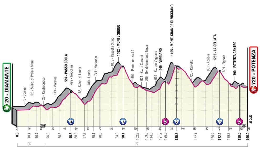 Monte Sirino di 1a categoria (24,4 km al 3,8%, con picco al 12%), quindi la