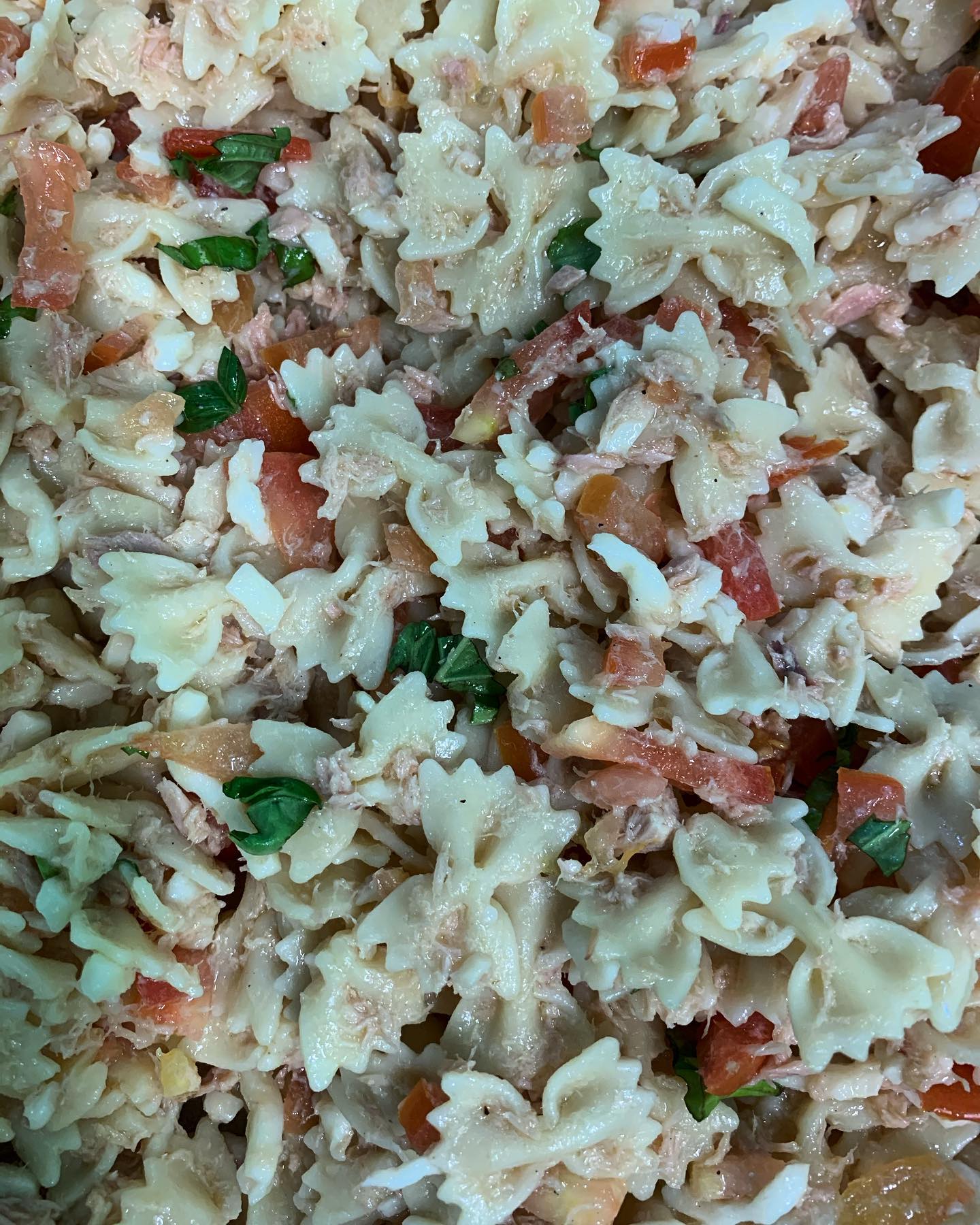 La pasta fredda con il pesce è sicuramente una variante atipica di questo primo piatto. ma è molto buona. Solitamente viene preparata con il pesce spada, i pomodorini, le olive e il basilico fresco ma si può utilizzare anche il salmone. Il gusto è molto fresco e perfetto soprattutto nelle giornate estive più calde.