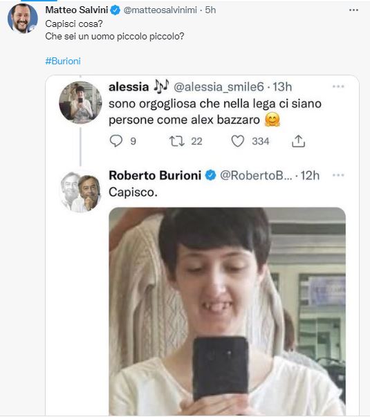 Matteo Salvini, dai suoi social, ha aggiunto: "Capisci cosa? Che sei un uomo piccolo piccolo?".