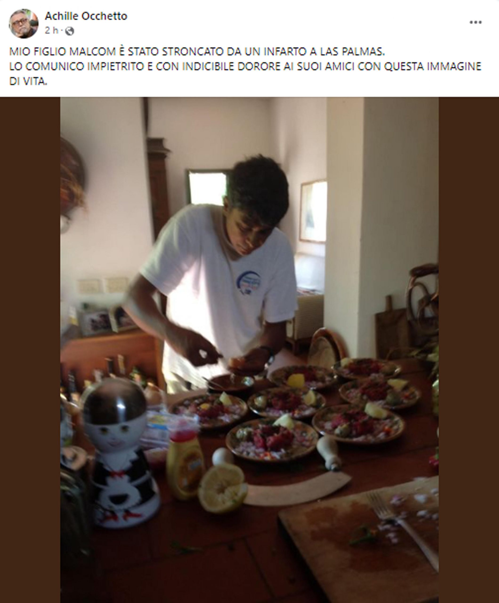 A stroncare la sua vita, solo all'età di 52 anni, è stato un improvviso malore, un infarto a Las Palmas. Malcolm Occhetto era film maker e direttore di fotografia.