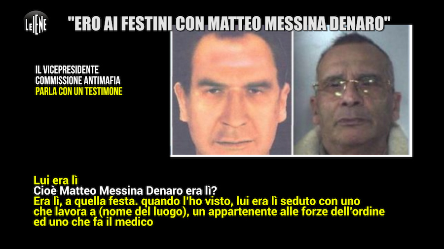 Si parla di un Matteo Messina Denaro che frequentava salotti importanti della borghesia e che partecipava come se nulla fosse a dei festini, dice La Vardera all’inviato de Le Iene Ho denunciato la testimonianza che mi hanno reso al Ros. Il testimone è una persona per bene, che fa una vita normale, che aveva paura di parlare perché le cose che poteva raccontare erano molto delicate e parlavano proprio di quella zona d'ombra che avrebbe potuto proteggere il boss latitante, durante il servizio verrà ripercorsa passo passo la testimonianza con le dovute tutele sul nome delle persone o su come la persona abbia avuto accesso alle feste per salvaguardarne l’incolumità.