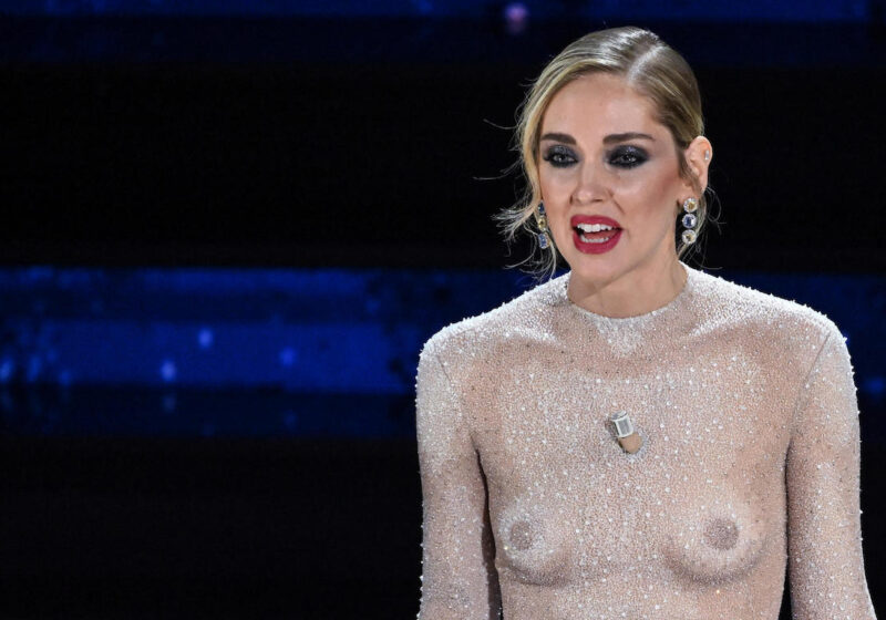 23:34 - Chiara Ferragni scende con il secondo abito che sembra lasciarla nuda con la trasparenza, ma in realtà è il suo corpo disegnato come specifica. Poi dedica un monologo biba, una lettera intensa che la fa commuovere.