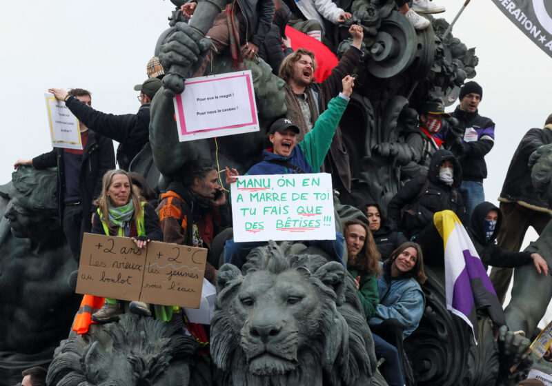 Centinaia di migliaia di persone sono scese in piazza a Parigi, Nizza, Marsiglia, Tolosa, Nantes e altre città della Francia, nella speranza di mantenere la pressione sul governo affinché faccia marcia indietro sulla riforma delle pensioni. Le proteste sono state caratterizzate da alcuni disordini: un incendio è stato acceso in un viale del centro di Parigi mentre la polizia disperdeva la folla con i gas lacrimogeni.