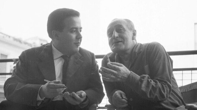 Uno scatto di un giovanissimo Maurizio Costanza che intervista Totò: