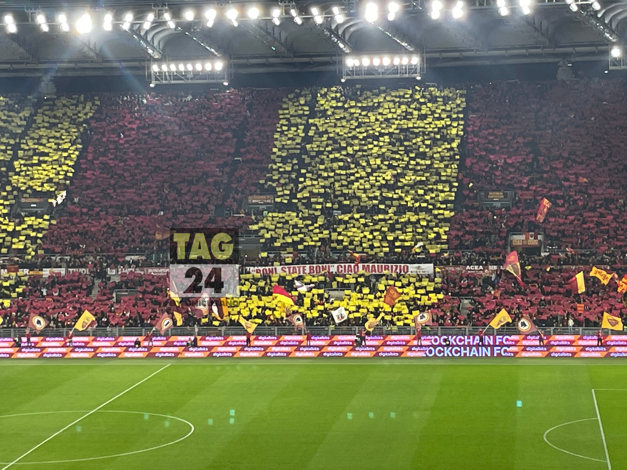 Roma - Juventus, lo striscione omaggio della Tevere a Maurizio Costanzo. Nella sua prima partita in casa dopo la scomparsa l'Olimpico sceglie di omaggiare il grande giornalista morto lo scorso 24 febbraio all'età di 85 anni presso la clinica Paideia di Roma. La Capitale ha visto una grande partecipazione popolare e di personaggi dello spettacolo alle esequie, con anche una delegazione delle giovanili del club giallorosso di cui Maurizio Costanzo era grande tifoso. Oggi lo stadio dove tante volte ha visto la sua squadra del cuore, di cui ha anche ricoperto il ruolo di responsabile della comunicazione, lo omaggia con un toccante striscione in Tribuna Tevere al momento dell'ingresso delle due squadre nel pre partita: "Boni state Boni, Ciao Maurizio", citando una delle sue frasi più celebri.