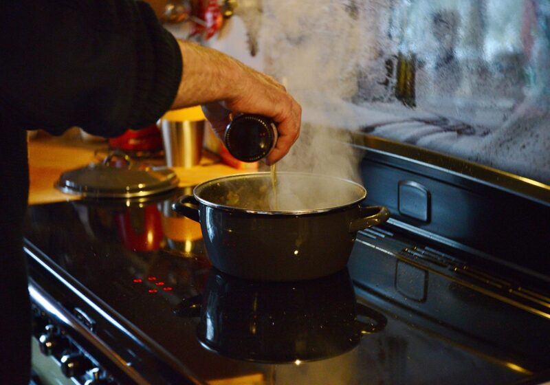 Continuando con la spiegazione di come cucinare il cinghiale in umido, è il momento di tritare gli odori con i quali cucinerete la carne: 1 cipolla, 1 carota, 1 costa di sedano e 2 spicchi d’aglio. Metteteli nel tegame con 4 cucchiai d’olio e aggiungete 1 rametto di rosmarino, qualche foglia di salvia e 2 foglie di alloro; fate rosolare per 20 minuti e poi aggiungete la carne. Mescolate bene, in modo che carne e aromi si amalgamino, poi bagnate con un bicchiere di vino rosso e fate sfumare. A questo punto aggiungete 400 g di polpa o passata di pomodoro, togliete rosmarino, alloro e salvia, coprite a filo con brodo o acqua calda e iniziate la cottura a tegame quasi del tutto coperto.
