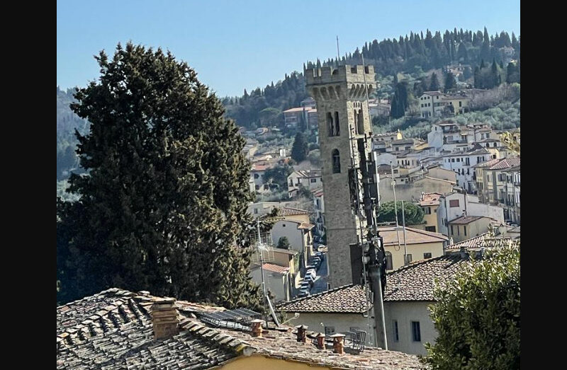 Capita spesso di arrabbiarci quando "cade" la linea del telefonino magari durante una importante chiacchierata o che internet "balbetti" ma non sopportiamo che un bel panorama venga in parte oscurato da un antenna collocata in una zona da ammirare. Succede a Fiesole, ad esempio, la città di 13mila abitanti considerata da sempre uno dei borghi italiani più belli, ricca di monumenti e tra questi la cattedrale di San Romolo che risale al 1028, ampliata nel Duecento e abbellita nei secoli successivi, finché nel 1878-1885 venne effettuato un restauro della facciata. Il campanile risale al 1213, ma fu rifatto nel Settecento e nel 1739 venne dotato di coronamento con merlatura sporgente.