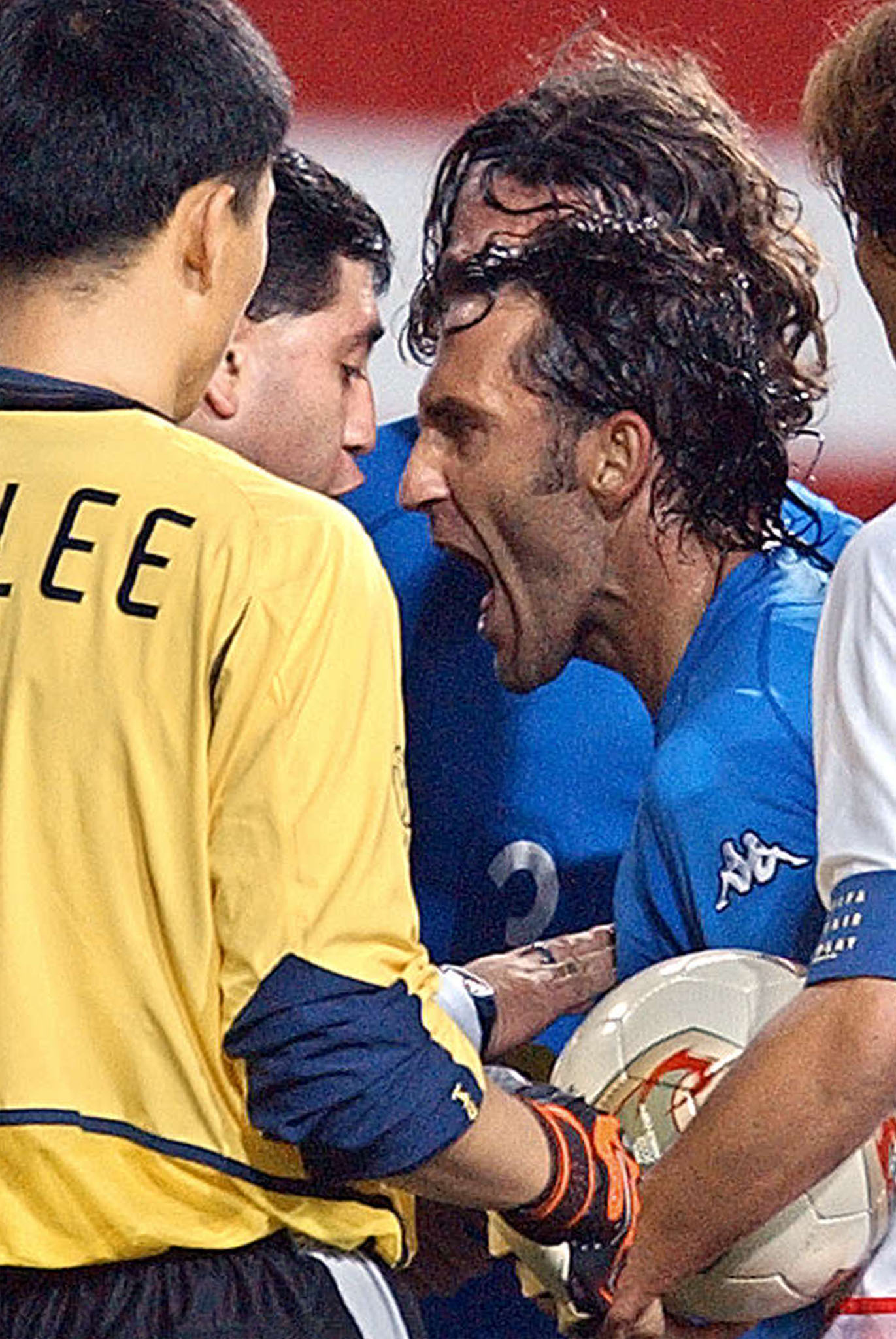 Il 18 giugno 2002 gli azzurri furono eliminati dal ‘Golden gol’, segnato dall’allora perugino Ahn. In quella partita, Byron Moreno favorì clamorosamente i sudcoreani padroni di casa - si giocava infatti a Daejon, una città nel centro della Corea del Sud -, segnalando fuorigioco inesistenti, ed espellendo frettolosamente Totti, per poi condurre la gara fino a 118 di supplizio.