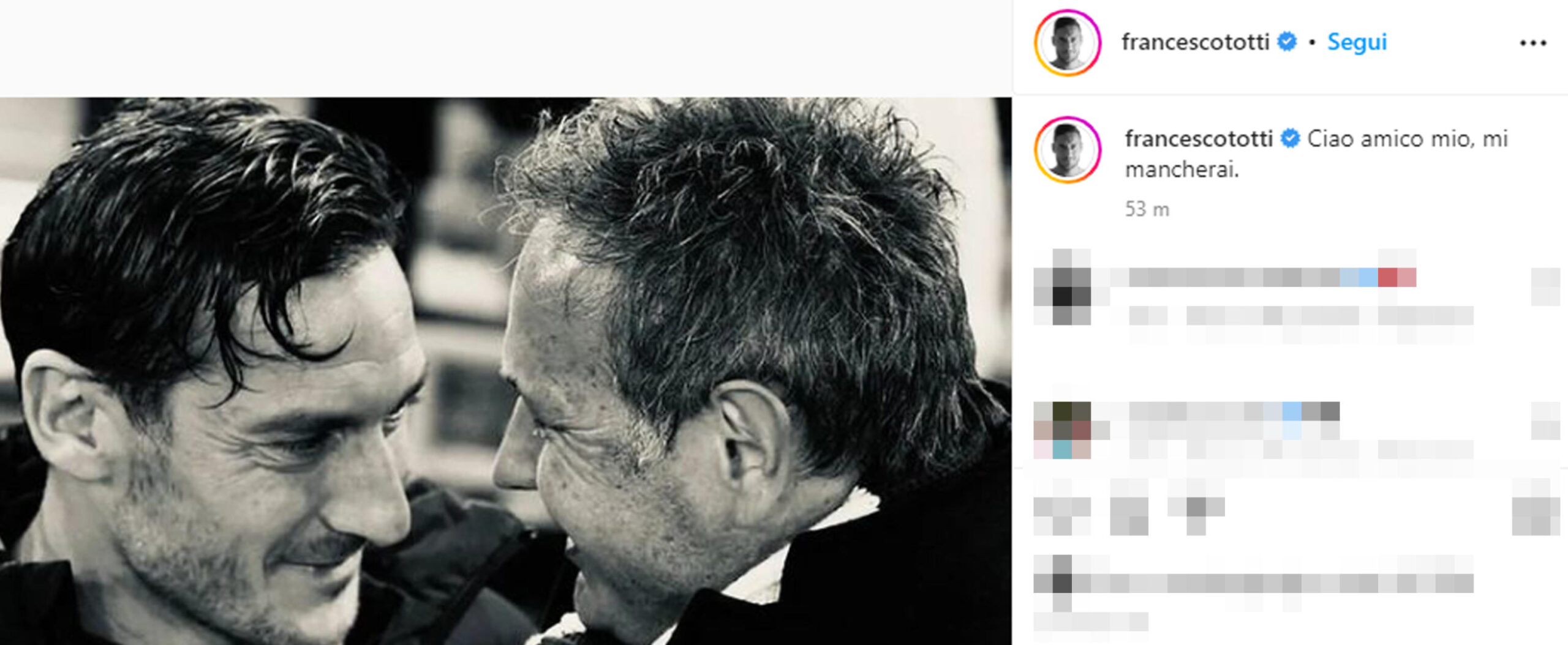 Questo il post attraverso cui Francesco Totti il 16 deicembre 2022 salutò l'amico appena comparso: "Ciao amico mio, mi mancherai".