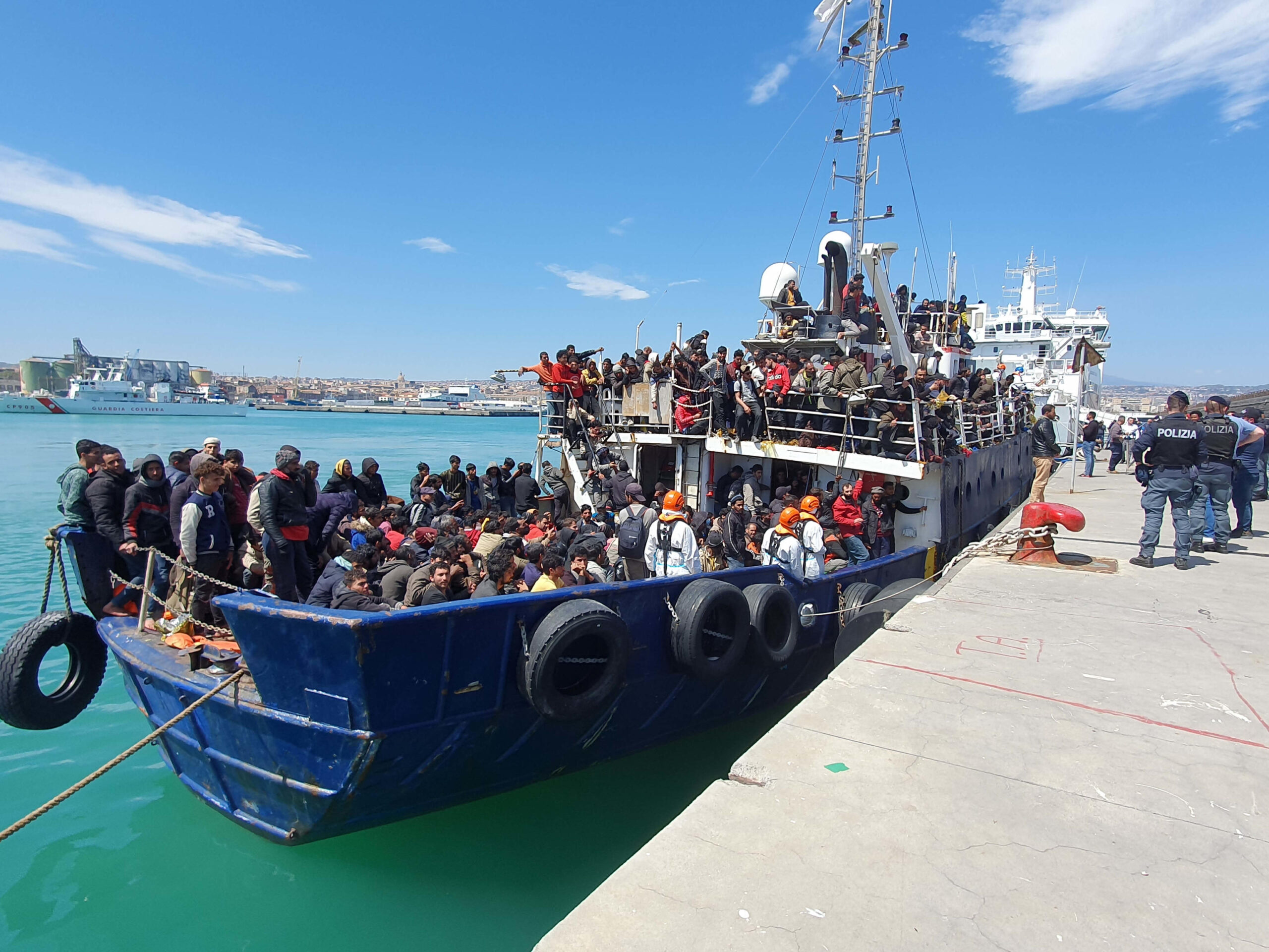 Ad accogliere le 700 persone, tra le quali anche donne e bambini, una bella giornata con temperature quasi estive. I migranti sono stati salvati tra le giornate di Pasqua e Pasquetta nel mar Mediterraneo, al largo della Sicilia, e assegnati al porto della città siciliana.