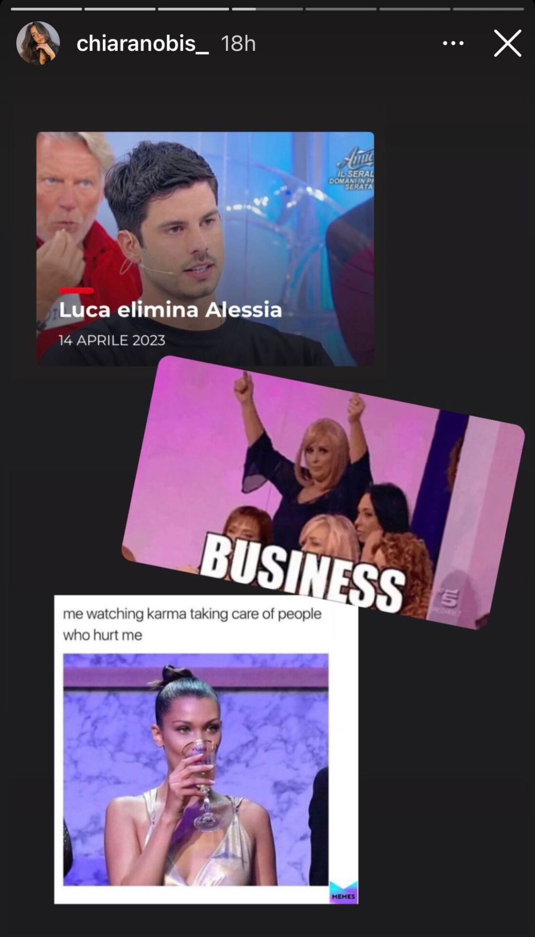 Gli Screenschot ironici sono una chiara critica nei confronti del bel tronista di Uomini e Donne Luca Daffrè. L’ex corteggiatrice ha preso di mira poi non solo Daffrè ma anche le corteggiatrici ancora parte del programma. Chiara ha pubblicando sui social uno di tanti screenshot a critica del tronista, all'esterna di Luca e Alessandra ha affiancato alla canzone di Anthony, intitolata Solo infatuazione. Subito dopo, la Nobis ha continuato nel condividere la parte in cui il tronista ha eliminato Alessia Spagnulo, inserendo una foto di un momento in cui Tina Cipollari accusava qualcuno di voler solo fare business all'interno del programma. Dunque, sembra che Chiara voglia accusare Luca di essere in trasmissione per un altro scopo, che non è quello di trovare l’amore.
