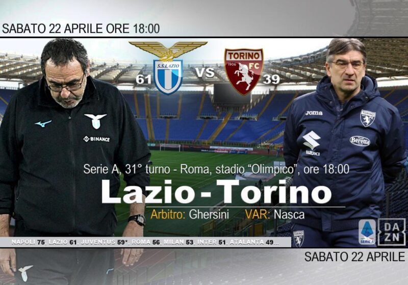 Lazio-Torino, sembra una partita da pochi spunti, ma è tutt'altro: in palio non solo i soliti punti per la vittoria ma anche una stagione intera! La lazio per continuare a conservare gelosamente il secondo posto che vuol dire partecipazione alla prossima Champions e il Torino per continuare a sperare in un posto all'Europa quello che consentirebbe di accedere alla Confernce League.