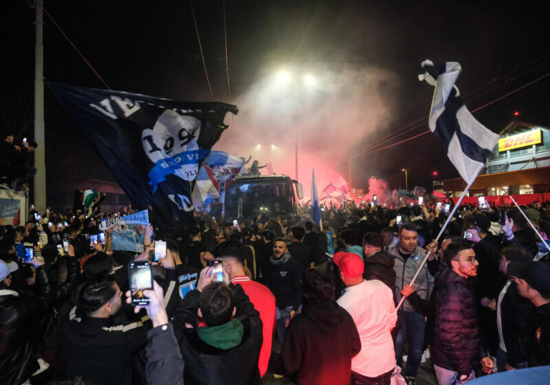 Il Napoli è sempre più vicino al terzo scudetto della sua storia. I tifosi sono passati dalla scaramanzia dei mesi scorsi, ai festeggiamenti di domenica notte dopo la vittoria in extremis sul campo della Juventus nonostante il trofeo non sia ancora ufficiale. Al momento per l’aritmetica certezza manca infatti qualche punto. La prima occasione per completare l’opera e festeggiare matematicamente lo scudetto che in città manca ormai da 33 anni potrebbe arrivare già domenica prossima. Alla squadra di Spalletti però non basterà vincere, dovrà anche attendere l’eventuale sconfitta della Lazio contro l’Inter. In caso contrario sarà necessario posticipare i festeggiamenti ufficiali di un paio di giorni ed aspettare il turno infrasettimanale. Nella giornata di ieri, per evitare di dover aspettare i biancocelesti, era stato richiesto che Napoli-Salernitana potesse essere spostata al giorno successivo.