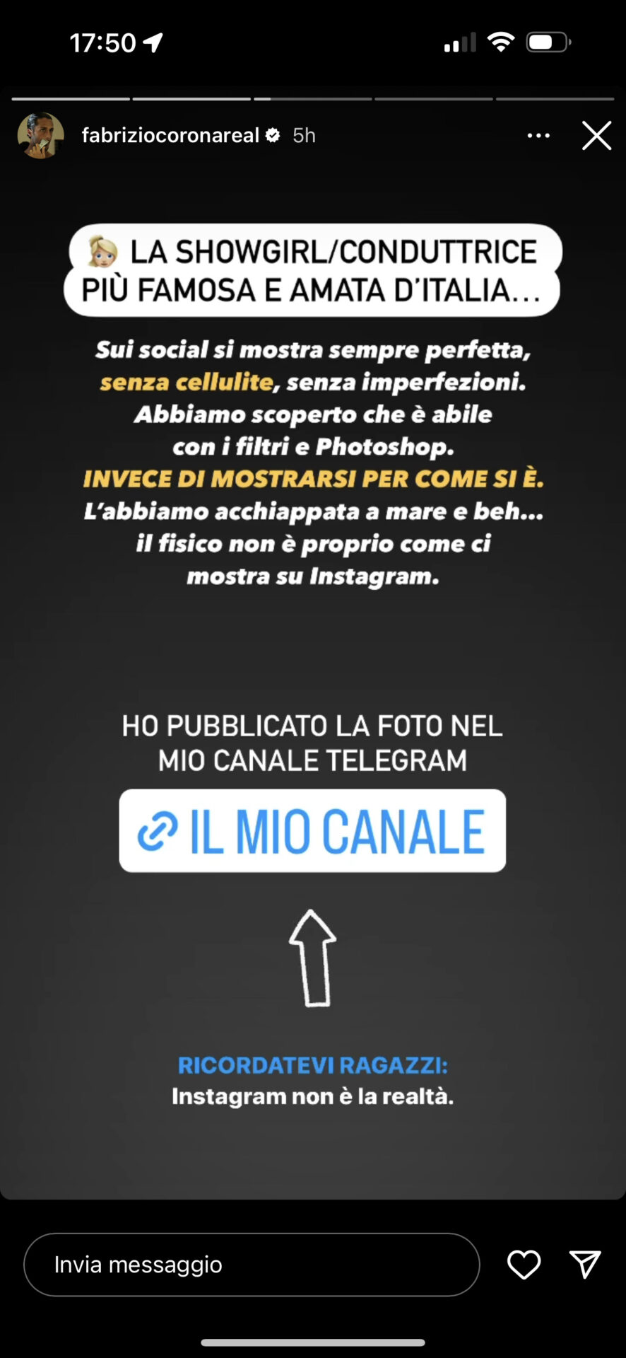 «Fabrizio Corona non si tiene e nelle sue storie sul profilo Instagram @fabriziocoronareal, scrive: