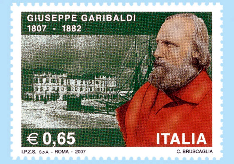 I Mille, che erano esattamente 1084, partirono 163 anni fa da Quarto, presso Genova, su due piroscafi: il Piemonte e il Lombardo, appartenenti alla compagnia Rubattino. I garibaldini prelevarono munizioni da Talamone in Toscana, poi, sbarcati a Marsala, raggiunsero Salemi dove Garibaldi assunse la dittatura in nome di Vittorio Emanuele II, decretando al tempo stesso la coscrizione obbligatoria. Sconfitte le truppe borboniche a Calatafimi, i Mille occuparono Palermo (nella foto: il francobollo celebrativo di Poste Italiane, emesso nel 2007 per il bicentenario della nascita di Giuseppe Garibaldi).