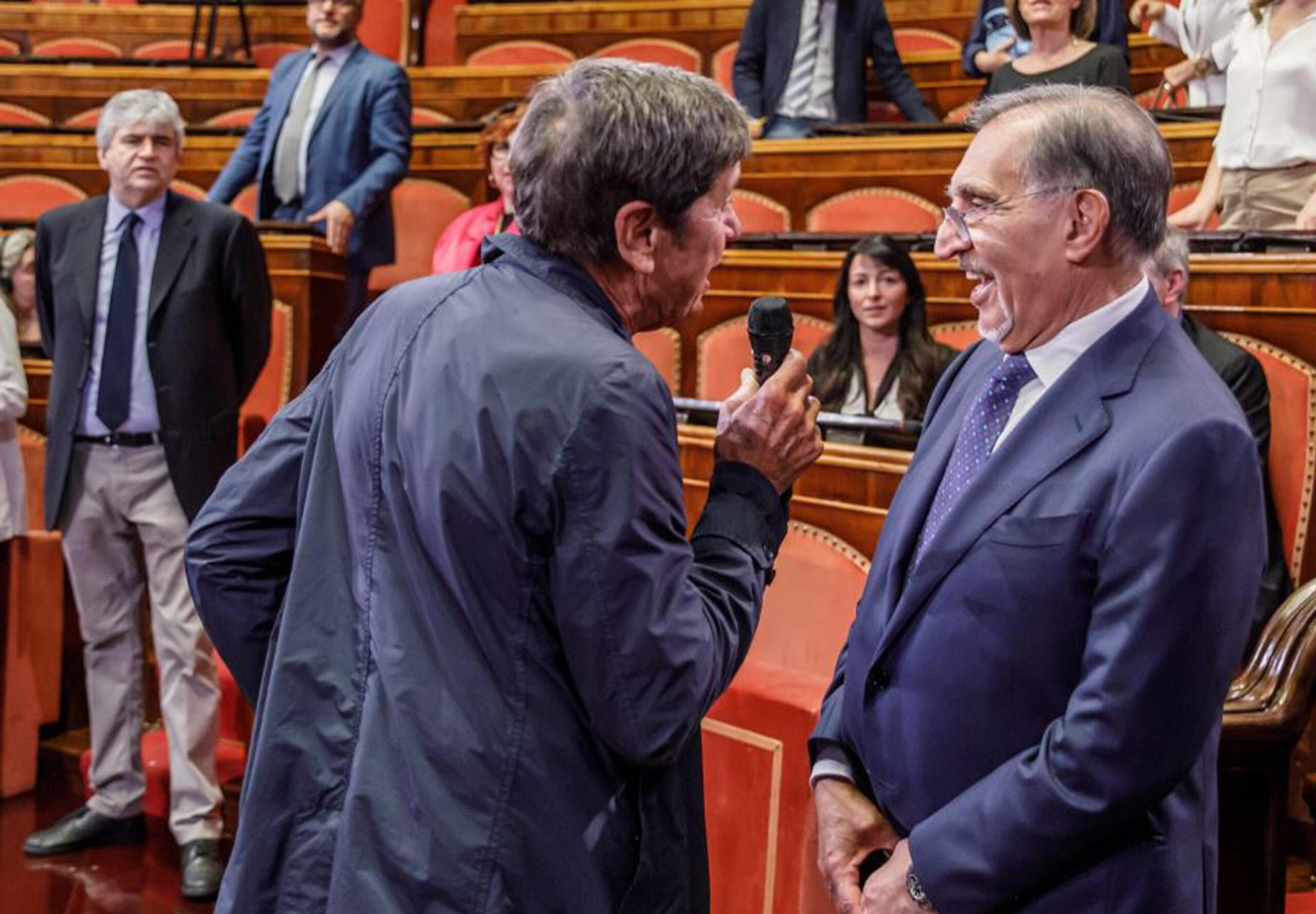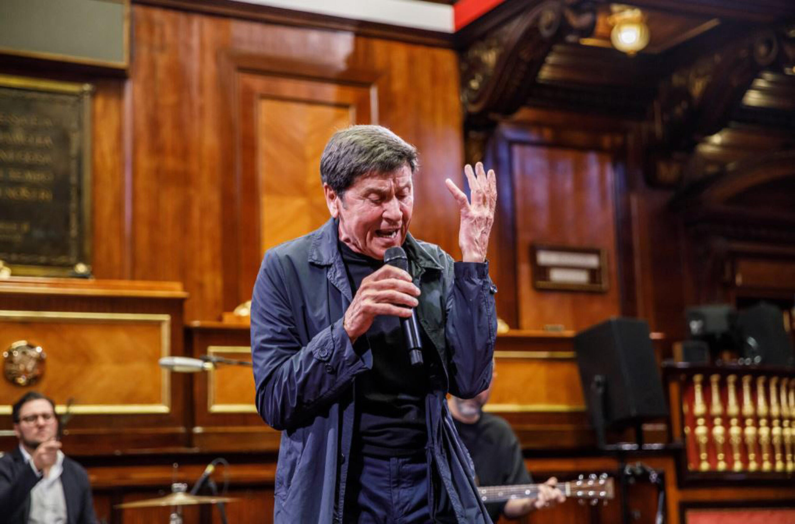 Gianni Morandi in Senato per i settantacinque anni dalla prima seduta canta l'inno di Mameli. Applausi per l'esibizione da parte del cantante di Monghidoro.